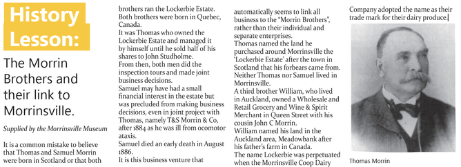 The name Lockerbie was perpetuated when the Morrinsville Coop Dairy Company adopted the name as their trade mark for their dairy produce.