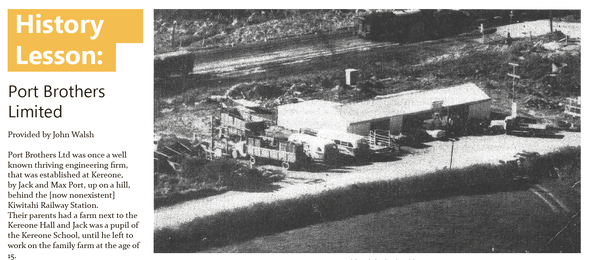 Port Brothers Ltd was once a well known thriving engineering firm, that was established at Kereone, by Jack and Max Port, up on a hill, behind the [now nonexistent] Kiwitahi Ra...