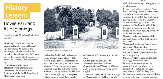 Mr George Howie was born in Wanganui in 1855 and in December 1910 purchased 86 acres in the eastern part of Morrinsville, this included his residence at 382 Thames Street, ‘Lo...